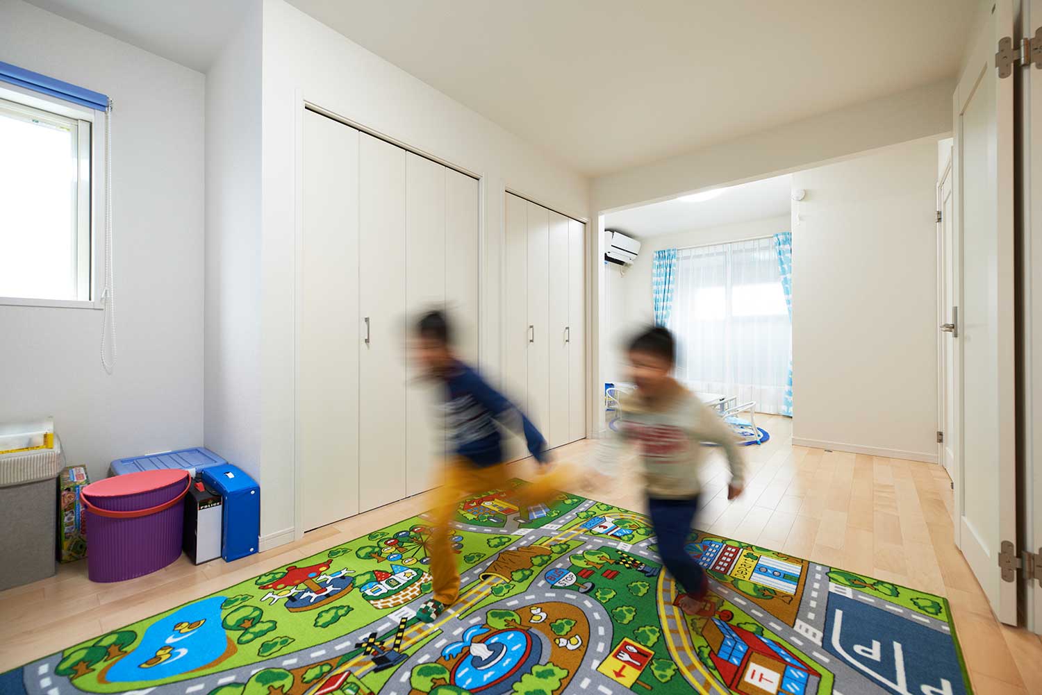 将来性を考えた子供部屋。個室が必要になると2部屋に分けることも可能な設計。